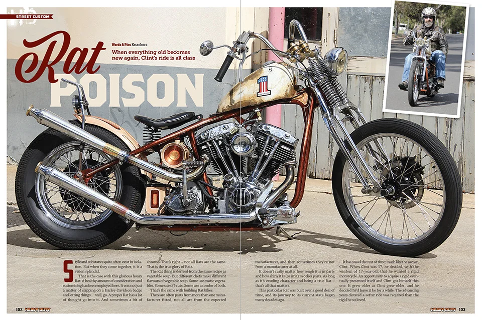 Also in issue 158 is a superb chopper built by Swede Martin Carlgren. He was invited to exhibit last year at the famous Born Free custom motorcycle show in LA and did not have a bike ready. So he built one from scratch – including a one-off V-twin motor. It won ‘Best International’ award.