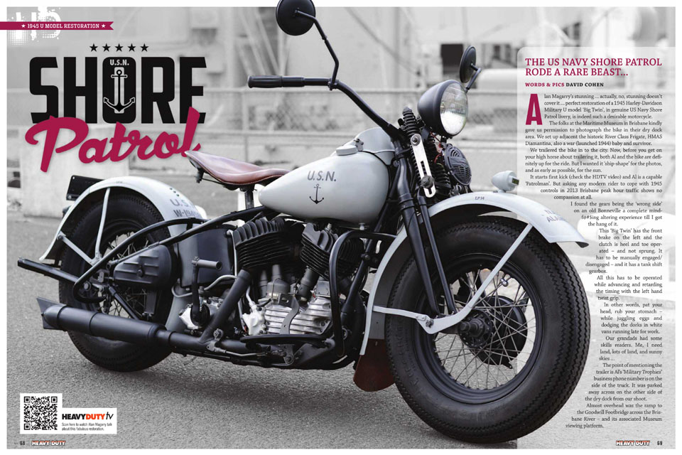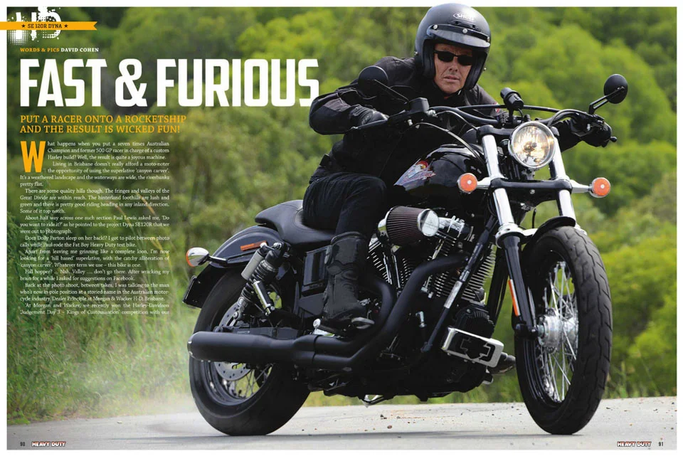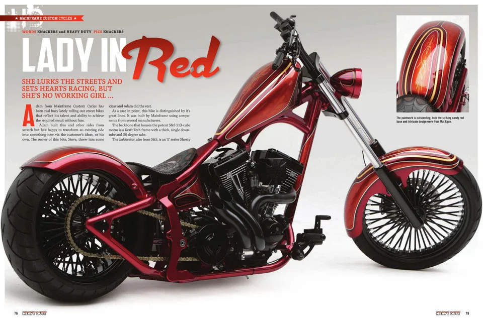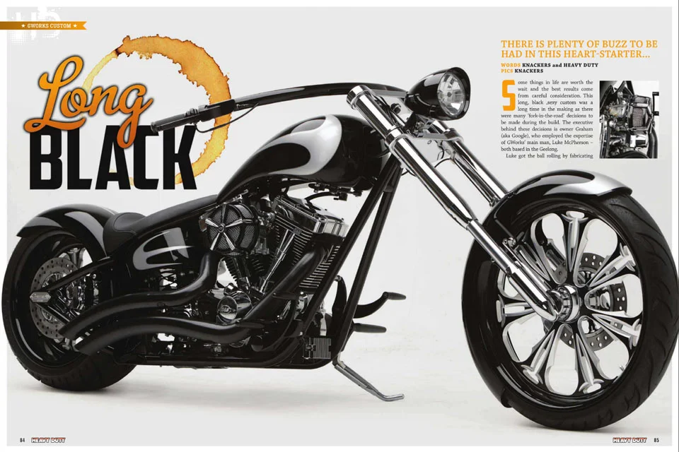 In this issue of HEAVY DUTY, the number one Harley-Davidson magazine in Australia we showcase our cover bike, a beautifully modified Street Glide from Westside Customs in Perth. It was shot in the studio of Dynamic Style Photography and the resultant images, both on the cover and the pull-out poster inside, are magnificently detailed as well as very striking. We also have a story on the new Indian Big Chief custom, a concept model built by Indian Motorcycle. And for something really different, check out the bike built by a guy using engine parts from a Cessna! Plus there are columns from Jesse James and Boris and a full wrap on the 2014 Great Race.