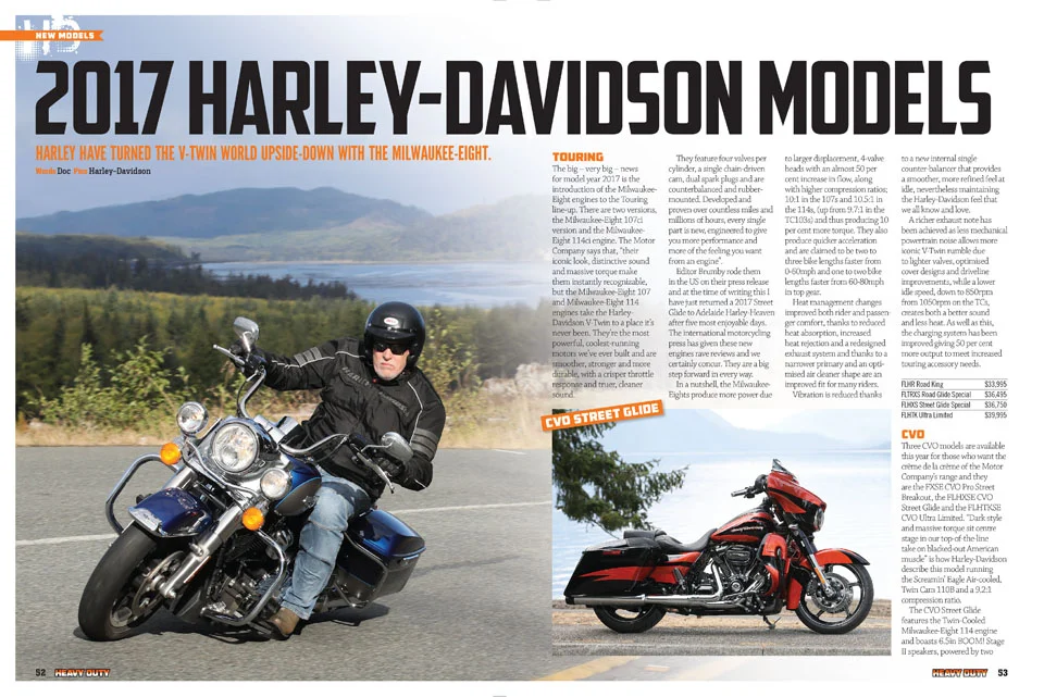 This issue – number 149 – of HEAVY DUTY magazine is all about THE MOTOR! Specifically, the brand-spanking new Harley-Davidson 'Milwaukee-Eight' four-valve engine. We ride the new Harley models and dissect their design and capabilities, and speculate on the future direction the M-8 will take Harley-Davidson. And as always there are feature bikes galore including APL's new 'darkside' custom and a stunning Street 750 custom which took out our Ed's Choice award at Sturgis. Add to that our full Sturgis coverage. What a year, and a what a great way to round out 2016. Grab your copy! Available Nov 4.