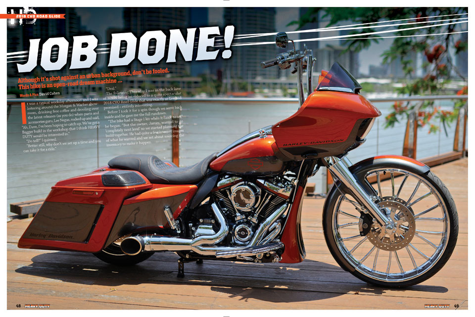 Welcome everyone to a new year and a new issue of HEAVY DUTY. Our first cover bike for 2019 is a very tasteful and very smooth 2018 Fat Boy, subtly enhanced by KPR Industries to be a stylish and cool reflection of the new generation Softail. This is how owners of these bikes want their rides to look – contemporary, low and clean. And the KPR bike has nailed that look. As well, we have a magnificent 1928 Harley-Davidson FHAD Hillclimber race bike. From the Harley City collection, this bike is a superb example of a high performance H-D from the early 20th century. Plus there is a huge Tech Torq feature and Dave Cohen rides a big-bling Brisbane Road Glide. We feature the 2019 USA Cannonball Run, the official opening of Harley Heaven in Sydney, Extreme Horsepower Expo, Bendigo's Shovelfest weekend, the 2019 HEAVY DUTY ‘Blues Cruise’ USA tour and much more. It’s all here for your holiday reading enjoyment so Happy New Year to all our readers!