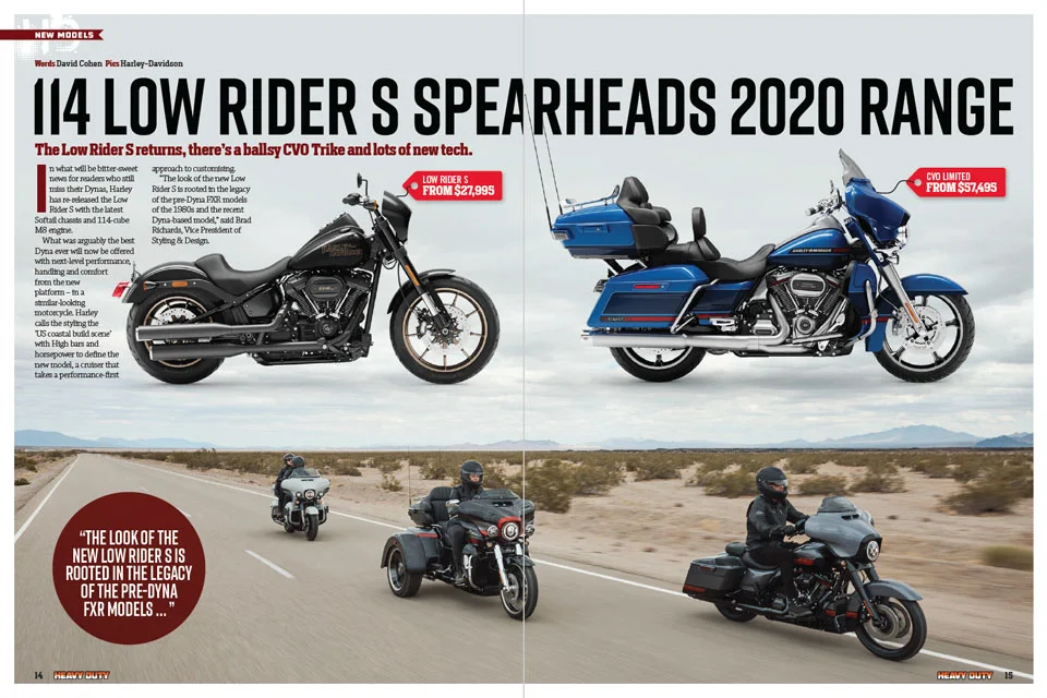We also preview the new 2020 range of Harleys including the new Low Rider S, 114 cubes of muscly goodness.