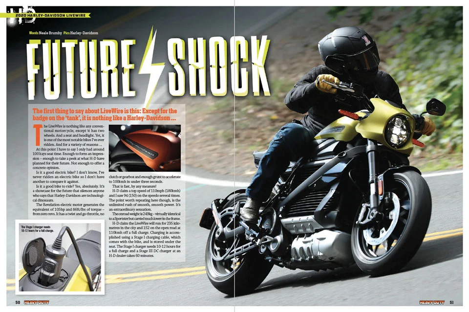 Yeehaa! Spring has sprung and sun is come. After a hectic ride through the USA in August we are ready to start our Aussie riding season. In the meantime, take a look at the September/October issue of HEAVY DUTY. On the cover we ride the new and controversial electric Harley-Davidson Live Wire. And it is a great bike to ride. But is it a great Harley?