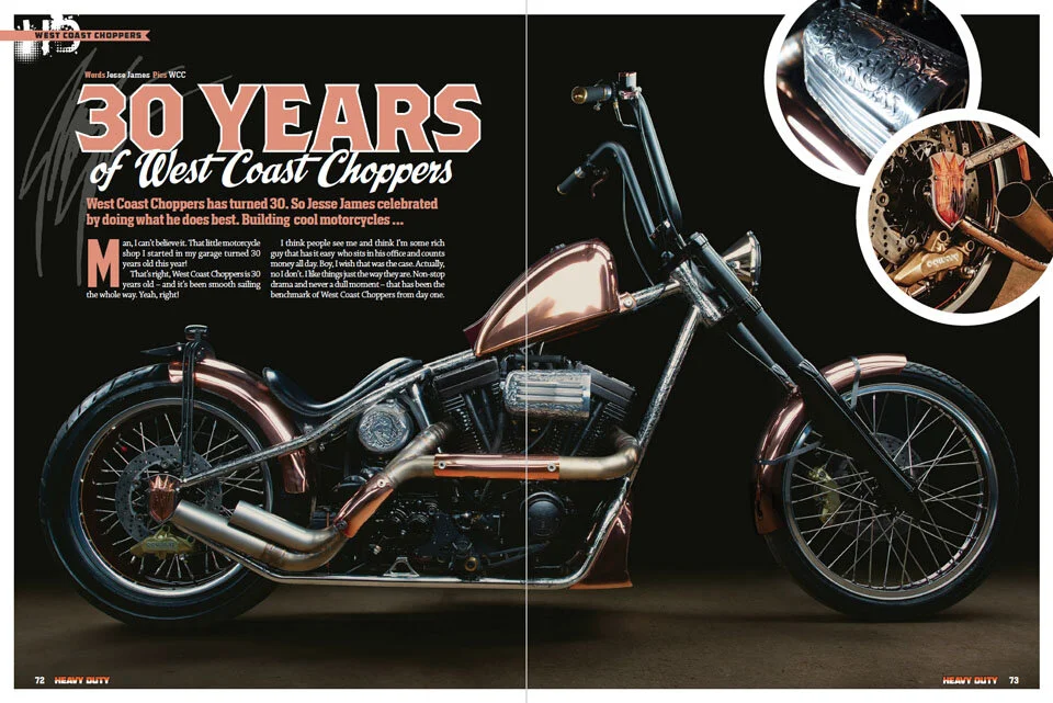 So it's only fitting that 2019 goes out with a bang and this issue is going to explode off the shelves. Our cover bikes are as different as motorcycles can be, yet both are built by big players in the V-Twin industry. Jesse James showcases his Copper Chopper to celebrate 30 years of West Coast Choppers and it is a beauty, displaying all of the effortless style that JJ is famous for.